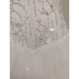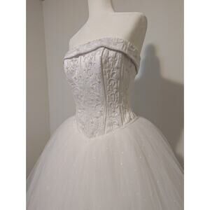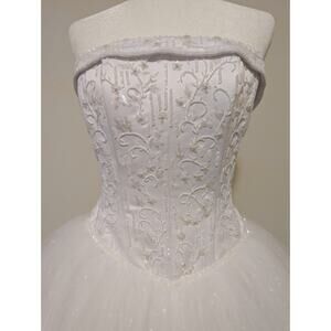 Strapless Corset Floral Beaded Basque Waist Debutant Ball Gown Wedding Dress Sz8