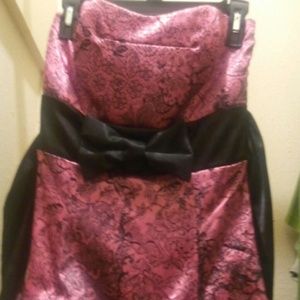 A pink and black silk dress worn once for homecoming. I need it gone asap for spring cleaning :) lmk if interested