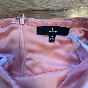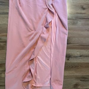 Worn once to a wedding Pink color Zips up the back Slit on left side