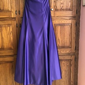 Classic strapless floor length gown. Purple. Satin