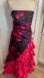 Strapless Floral Tropical Ruffle Gown Pink Black Sequin Satin Layered Dress S/M