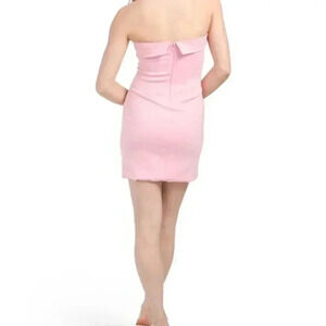 Strapless Fold Over Top Mini Dress (Color: Barbie Pink)