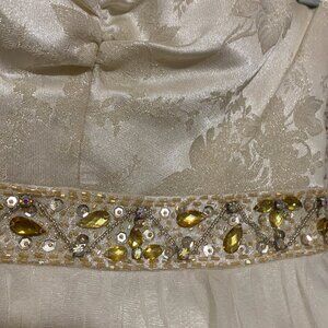 Cream short strapless dress with layered white tulle. Assorted jewels near bra line. Size 5/6. Worn twice.