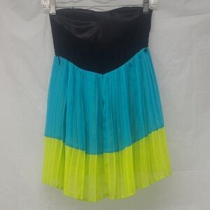 Strapless Halter Top Black Bra Bodice Green Aqua Blue Pleated Hi lo