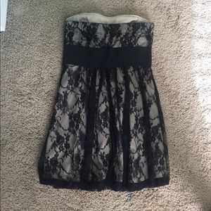 Cute elegant dress that has only been worn once. The top is padded and not recommend for any bra size bigger than a small C. There is no zipper, there is an elastic band in the back that helps keep it up. In great condition and very comfortable and it is small so not recommended for anyone over 5'4"