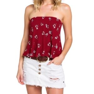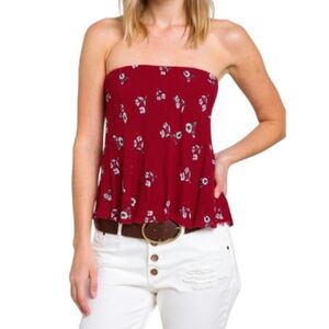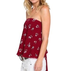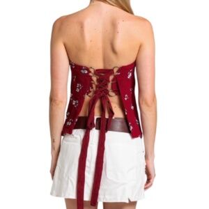 Heat of the Sun Red Strapless Lace-Up Top