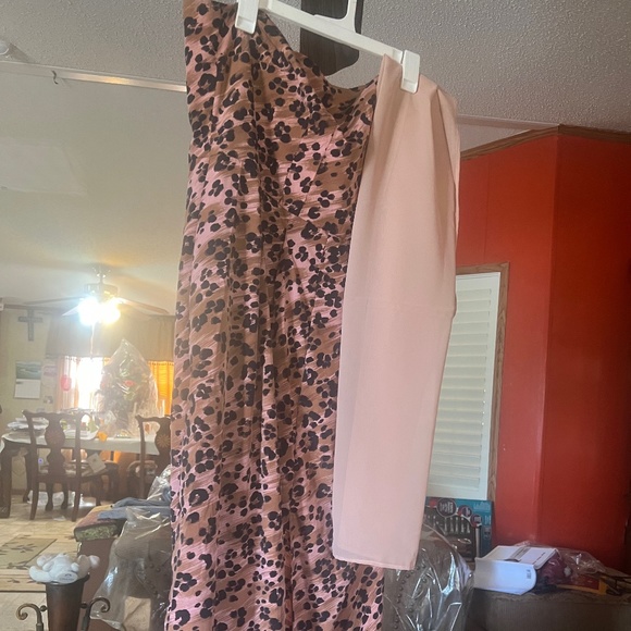 Newly designed Size 12 lightweight leopard with coordinating scarf or shawl for that first date or night out with the girls. Slit up thigh