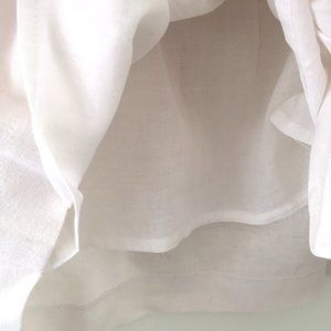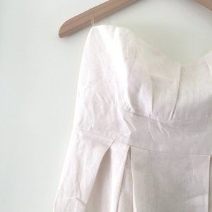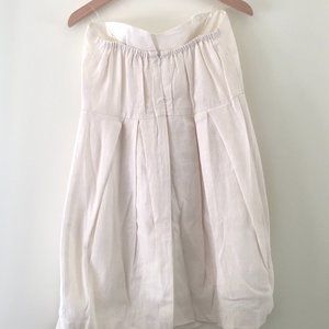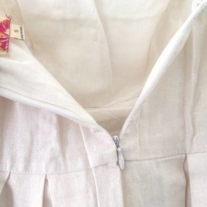 Worn 1x, excellent condition / great dressed up or down / 55% Linen 45% viscose / hand wash / adjust / hidden back zipper / elastic gathering in the back / lined / note: very faint line near the bottom hem (see pix #6)