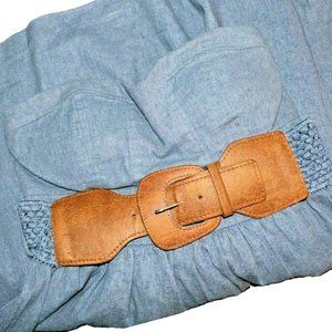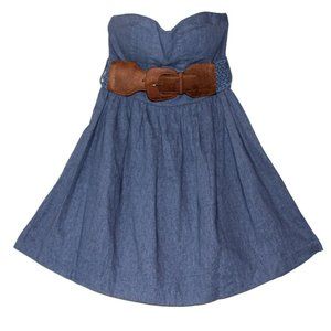 Junior/Misses Size SM Short Summer Dress Linen Chambray, Built-In Bra - like new. Separate belt with elasticized back and leather look front/buckle