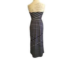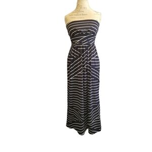 Look stylish and feel comfortable in our strapless striped maxi dress.
