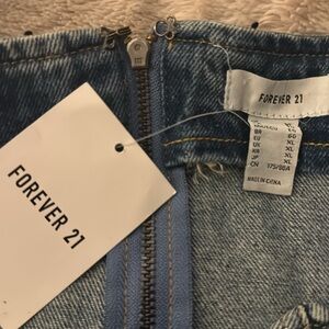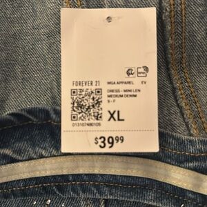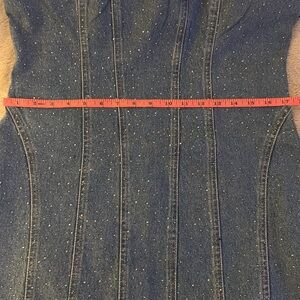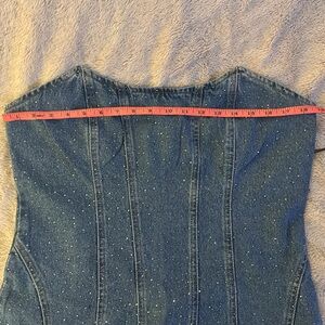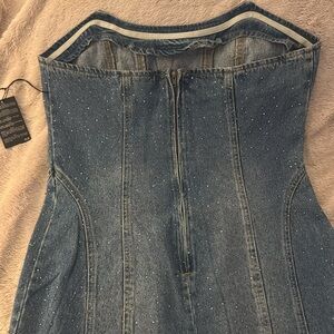 Denim and Jewels! This strapless denim mini dress has rhinestones making it super cute and sparkly! Size XL from Forever 21, this dress is brand new with tags.