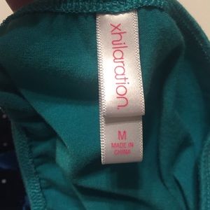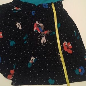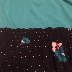 Strapless cotton dress. Fun colors. Soft fabric. Teal top black polkadot skirt with flower print. Elastic waist on back of dress