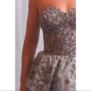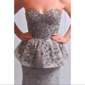 Strapless Peplum Gown Gray