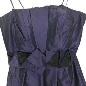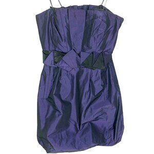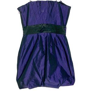 Strapless Pleated Bubble Hem Mini Cocktail Dress Fit Flare Size 4 Purple Taffeta