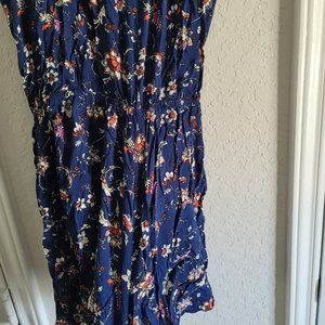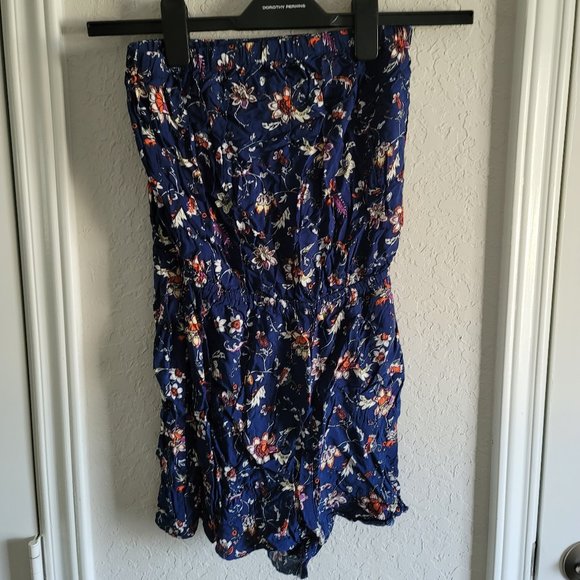 Strapless Navy blue flower romper Size 8 (small-medium size not for curvy individuals) No returns/ sold as is Never worn