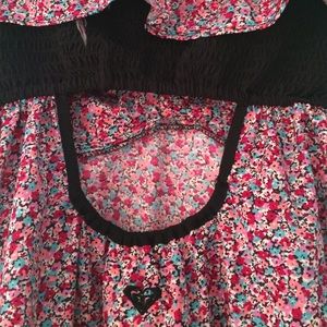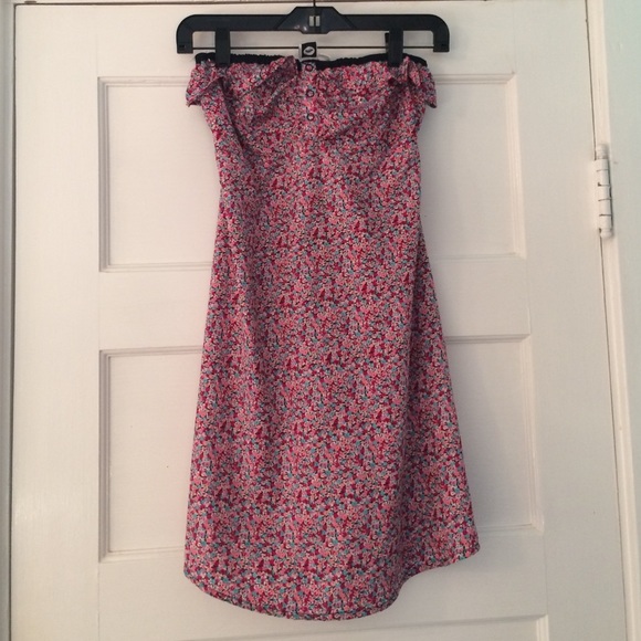 Roxy, size XS, strapless, pink floral print, back cutout, tight around the bust and then flowy below, in excellent condition, perfect as a beach coverup or summer outfit!