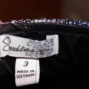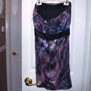 SIZE 3. Patterned sequin dress with blue and purple colored sequins. Strapless dress. Perfect for homecoming, sweet sixteens, or bat mitzvahs.