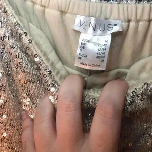 Make a statement at your next event in allover sequins that assure you draw attention. The floaty overlay top of this sparkly strapless jumpsuit adds more dimension to the loose-fitting bottoms that flare to wide legs. Shape-defining elastic at the shoulders and waist fits this luxe look to your shape!