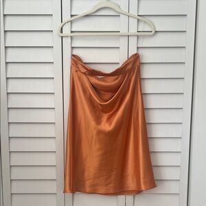 Elegant satin slip dress with a cowl neck. Vibrant orange color.