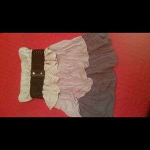 Multiple grey tone, "wrinkled" look, under bust snap bow belt. Goes great with leggings or skinny jeans