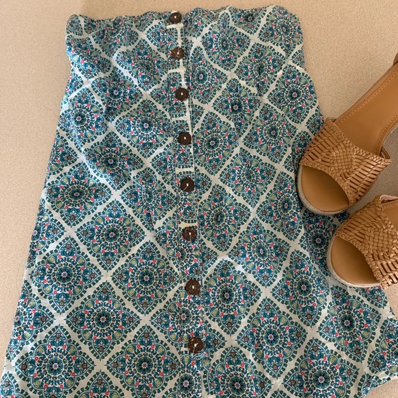 Cute summer strapless top. Pair with wedges and jeans! It’s a bit longer so if you have a long torso it’s fits best.