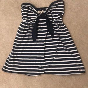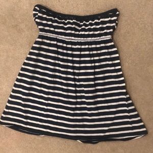 This blue and white striped strapless top from Hollister is in great condition and looks adorable over white jeans (and blue jeans as well)! It’s in great condition and could use a new home.
