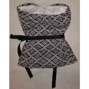 Super cute strapless black and white lace top With black ribbon tie belt Sweetheart neckline Used, great condition!