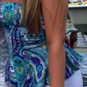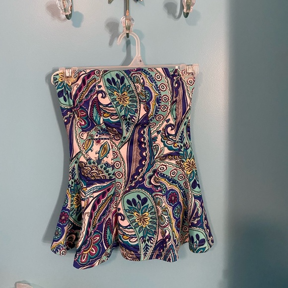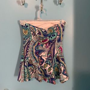 Adorable patterned strapless top! Worn a few times and in great condition! Built in cups.