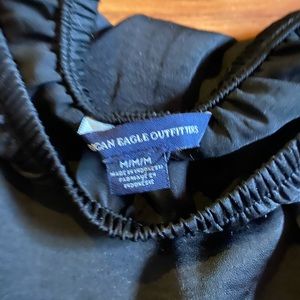 Flowy black top, with super cute off the shoulder sleeves. Great for a night out. Neckline/top is elastic so that it stays put.