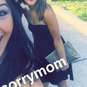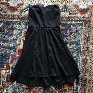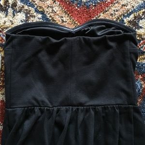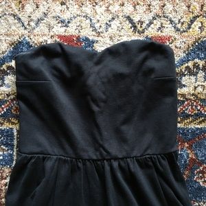 Sweetheart neckline. Stretchy black material. No zipper. Great little black dress, only worn once!