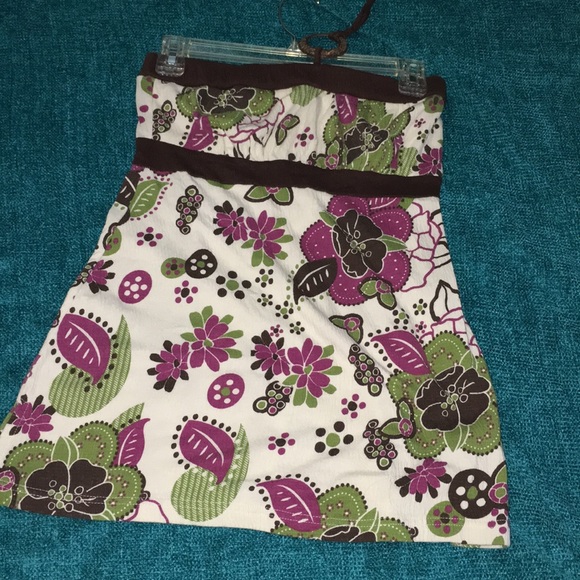 Strapless blouse with neck tie and flowers excellent condition size large