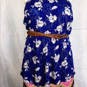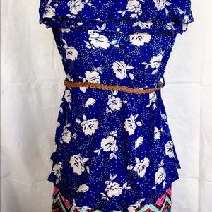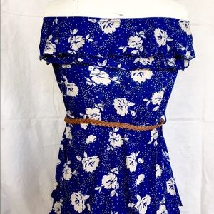 Strapless blue blouse with white floral design! The blouse is stretchy especially at the top. Comes with the brown braided belt. New and never before worn!