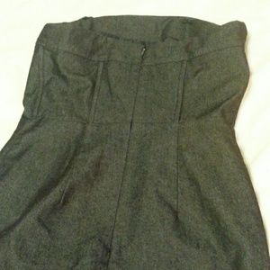Strapless short dark blue denim dress, lined, boning in lining for structure, elastic strap at back for support, very well made and easy to accessorize.