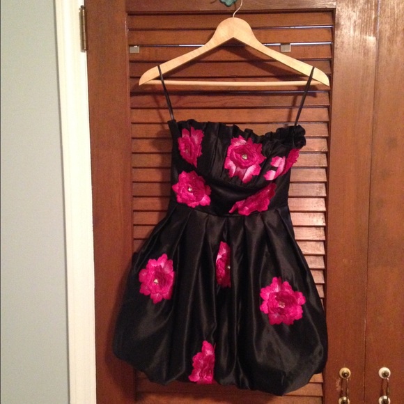 Black strapless dress with pink flowers. Only worn once to a wedding.