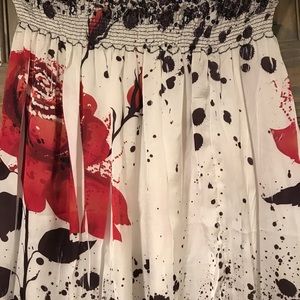 Tube top floral patterned dress.