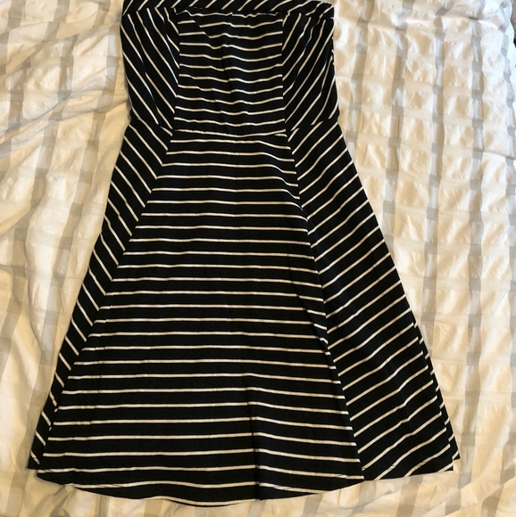 Strapless fit & flare black & white striped dress . Size small, worn once