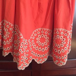 Adorable NWT strapless orange dress with beautiful embroidery along the bottom (see photo 2). Perfect with a cardigan for fall!