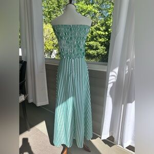 Effortlessly chic and comfortable, this strapless smocked maxi dress is perfect for warm-weather outings. The smocked bodice provides a flattering fit, while the flowy skirt adds a breezy, elegant touch.