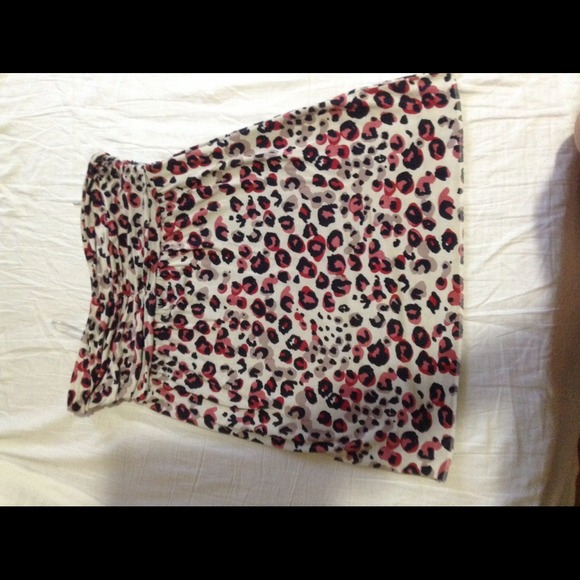 Leopard print colors on the shirt are black, red, pink and taupe. It's a size small but it fits a size M&L