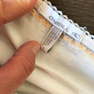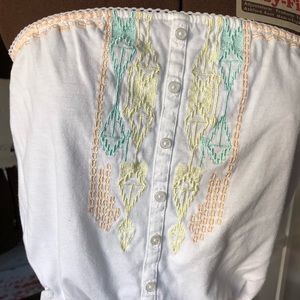 Beach fun strapless top. Buttons and light embroidery on the front. Gathered at the waist. Good condition.