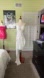 Measures 17 inches pit to pit and 33 inches shoulder to hem 57 inch side train 16 inch waist. This dress is so pretty it is a velvet material with a sequine and lace middrift. There is a long velvet train on the one side and it zips up bag.