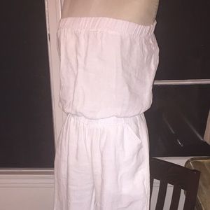 Strapless wide leg white linen jumpsuit