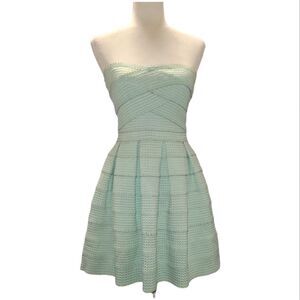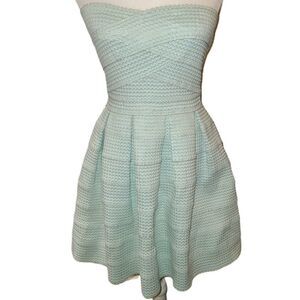 Strapless dress by June & Ivy in a size medium. Color is a very light mint green. Bandage style design for a textured look. Originally sold at Francesca's.