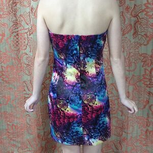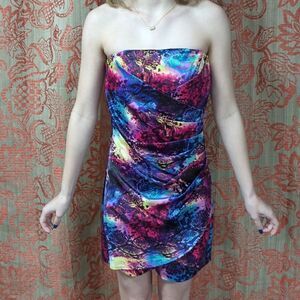 Strapless Mini Dress Satin Snakeskin Pattern Jewel Tones Prom Club Party
