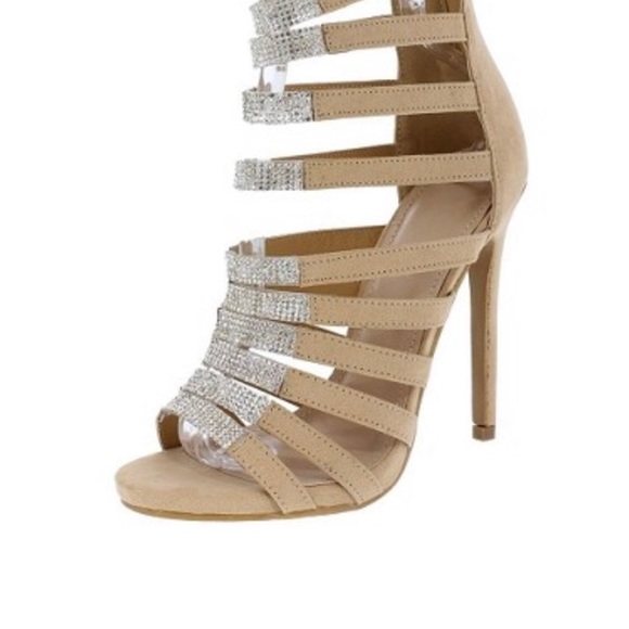 Strappy Rhinestone Heel in Nude