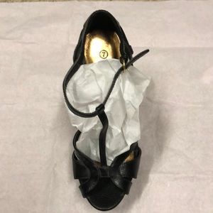 5” heel. Worn once to an event. Perfect condition. Non slip bottoms