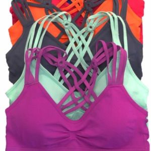 Strappy bralettes great for layering under tanks, dresses and tops. Removable pad. 88% nylon 12%spandex. Message me your choice of color. I have black and white. Discounts when you buy more than one.