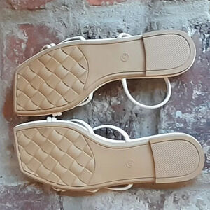 GORGLITTER PU Leather Flat Slip on Sandals Cross Strap Open Toe Summer Slide Sandals New without box Size CN 40 Wich is 10US according to chart. Approx measurements heel to big toe 10 1/3" and 4" width mesuered with fingers in straps at widest point. GORGLITTER PU Leather Flat Slip on Sandals Cross Strap Open Toe Summer Slide Sandals