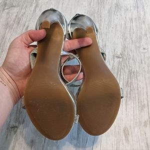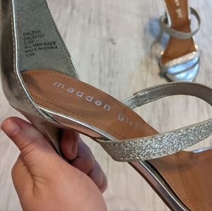 Strappy Madden Girl Daleah Sparkly Silver Zip-Back Heels Size 5.5