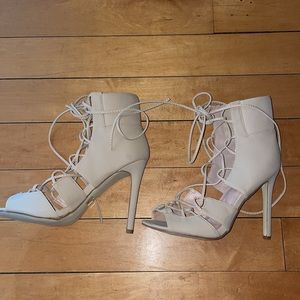 Never worn strappy nude heels. In like-new condition